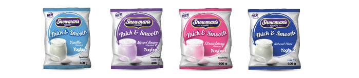 Snowman's YoghurtFeel the rhythm everyday with the delicious and nutritious Snowman's Yoghurt range. Our yoghurt helps improve your digestive comfort and kick start your day. Our Yoghurt contains potassium, calcium, protein, Vitamins B & B12 to keep you energised throughout the day. The Snowman's Yoghurt Range includes the "Thick & Smooth" variety and the "Real Fruit" variety:Snowman's Yoghurt with Real fruit