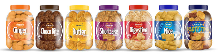 NEW & IMPROVED! Try the all new UBISCO Jar Biscuits range. Variants included: Ginger, Choco Bite, Butter, Shortcake, Digestive, Nice and Party Time. Available in 1kg Jars.
